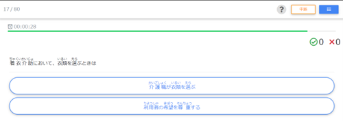 実際の国家試験同様、ルビなし、ルビありを選ぶことができます。